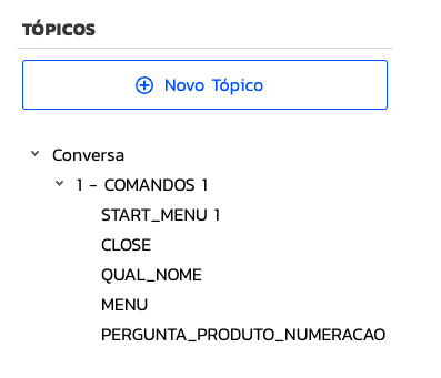 A estrutura básica do robô se atêm a Tópicos e Perguntas. Cada tópico poderá conter N perguntas.